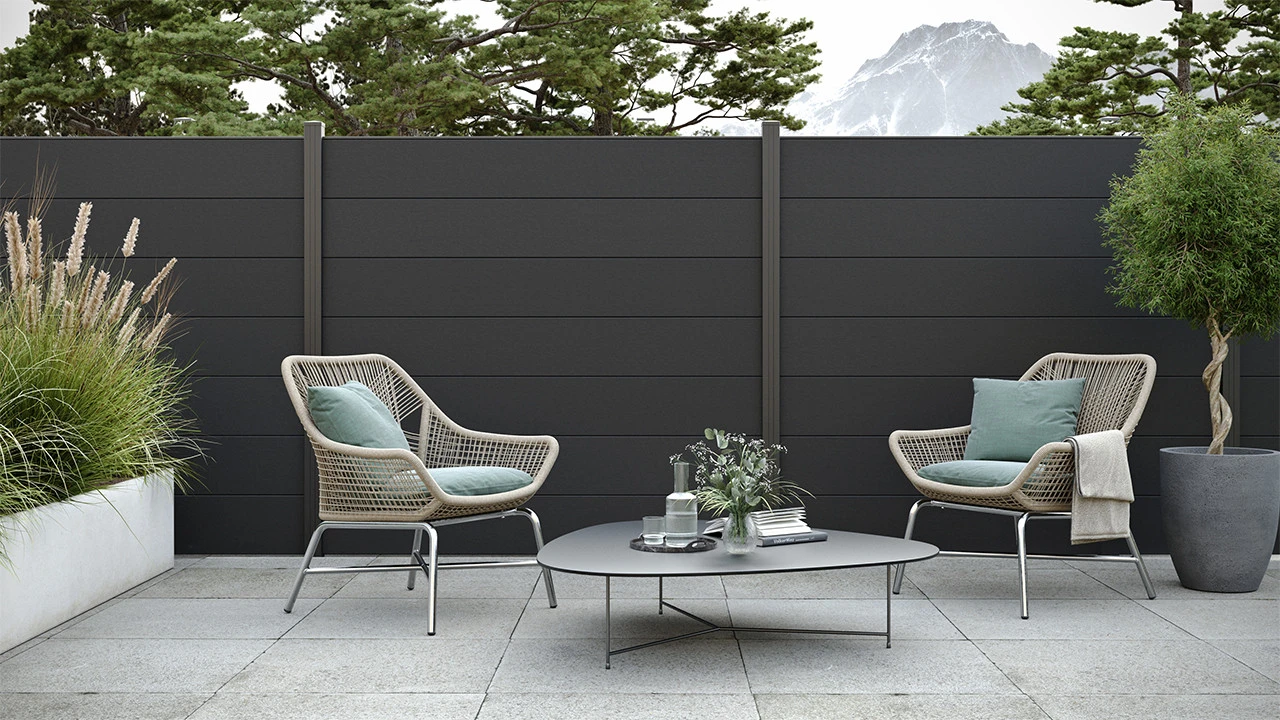 wechselnde Witterung und UV-Strahlung macht dem BPC-Sichtschutz wenig aus. Das robuste BPC-Material ist leicht zu reinigen mit lauwarmen Wasser, Bürste oder Druckstrahler.