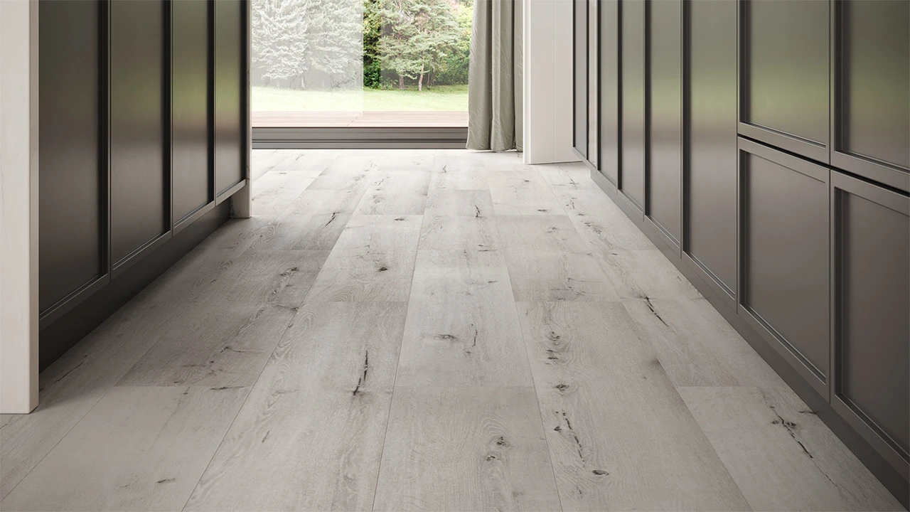 Entdecken Sie die authentische Holzoptik mit unserer Embossed-In-Register (EIR) Technologie. Diese innovative Herstellungsmethode verstärkt die Tiefe und Textur des Bodens, um ein täuschend echtes Holzgefühl zu vermitteln. Erleben Sie natürliche Schönheit und verbesserte Traktion.