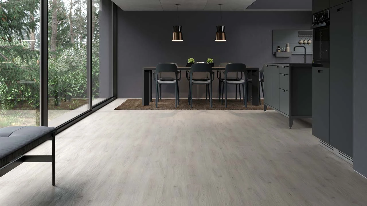 Durch das planeo Klebevinyl – Karakum Oak Light Grey erhalten Ihre Räume eine moderne und zeitlose Optik. Das hochwertige Eichendesign erzeugt einen freundlichen und zugleich edlen Charakter.