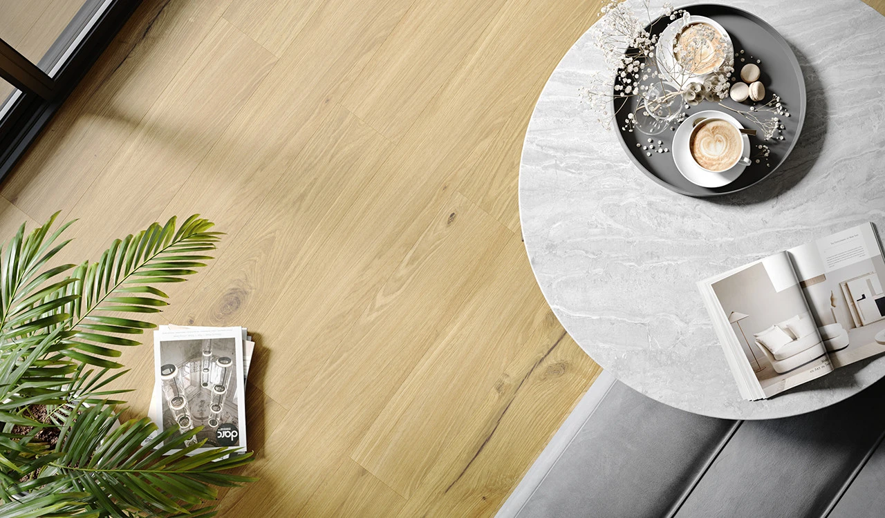0,50 mm Nutzschicht – 33 Gewerbe (intensiv) – Rigid SPC – Microfase – Trittschalldämmung – Holzoptik Landhausdiele beige
