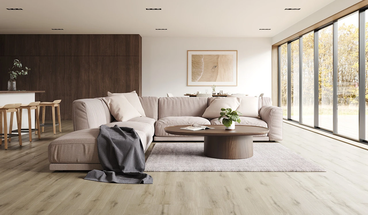 Vielseitigkeit: Rigid Klick Vinyl kann in verschiedenen Räumen eingesetzt werden, einschließlich Wohnzimmer, Schlafzimmer, Küche und Badezimmer.