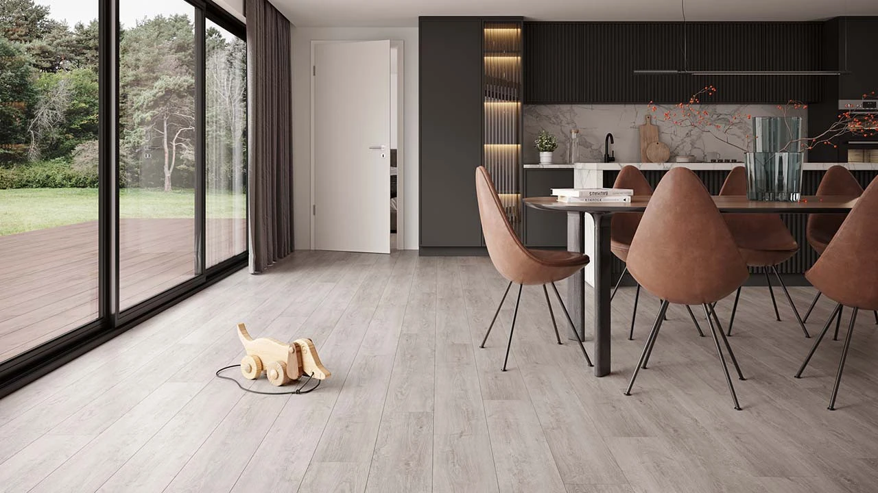Die Dielen sind wasserbeständig und leicht zu reinigen, was sie ideal für Küchen, Badezimmer oder andere Feuchträume macht. - Geeignet für Fußbodenheizungen