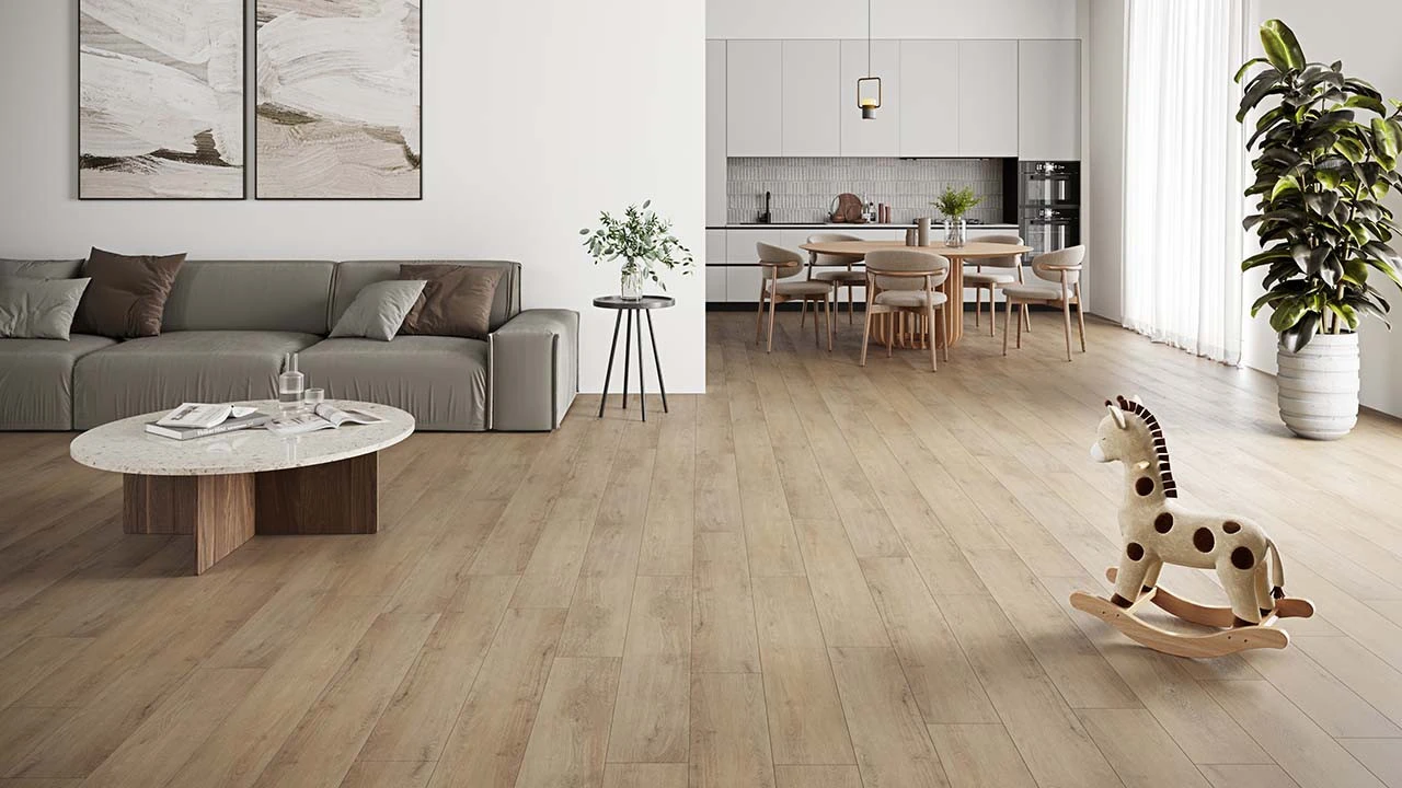 0,30 mm Nutzschicht – 31 Gewerbe (leicht) – Vollvinyl – Microfase – Holzoptik Landhausdiele creme