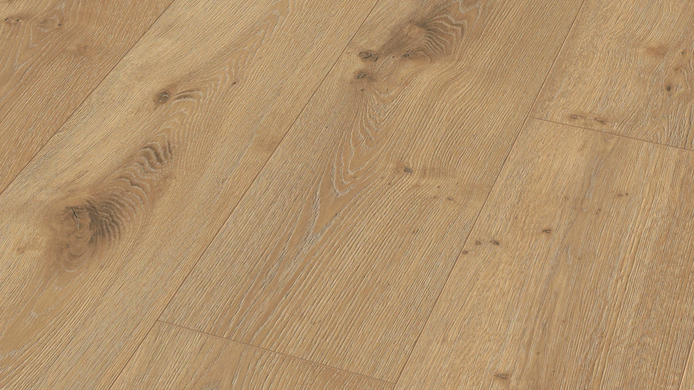 Unsere Laminatböden sind mit einer AquaStop-Kantenimprägnierung ausgerüstet die das Verlegen in Feuchträumen ermöglicht. - Kratzresistente Oberfläche