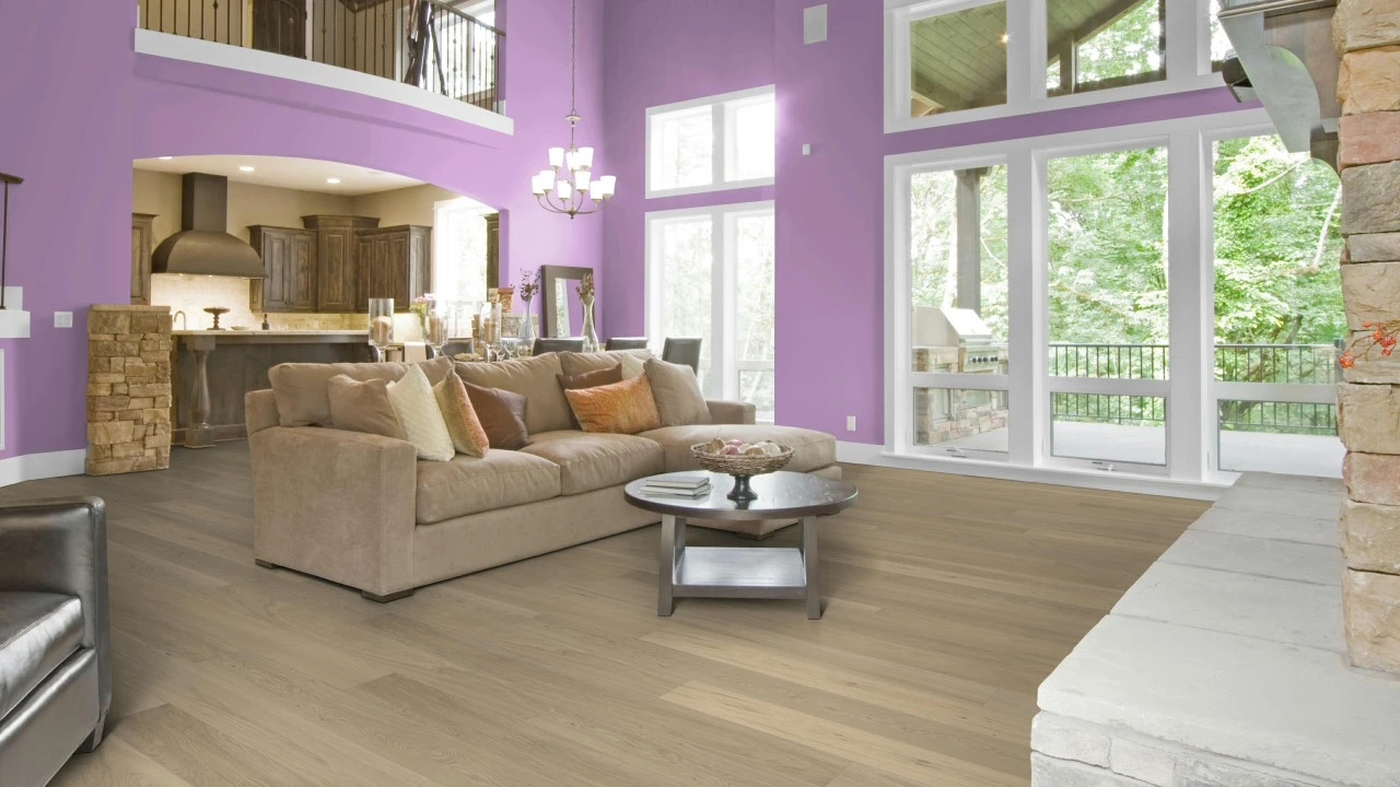 4,0 mm Nutzschicht – 3-Schicht – Fase (4-seitig) – Klick-System Drop-Down – Landhausdiele – weiß geölt – lebhaft/rustikal – gebürstet – beige