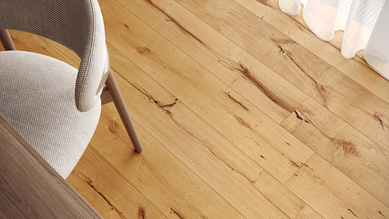 3,0 mm Nutzschicht – 3-Schicht – Fase (4-seitig) – Klick-System Drop-Down – Landhausdiele – geölt – markant – gebürstet – braun