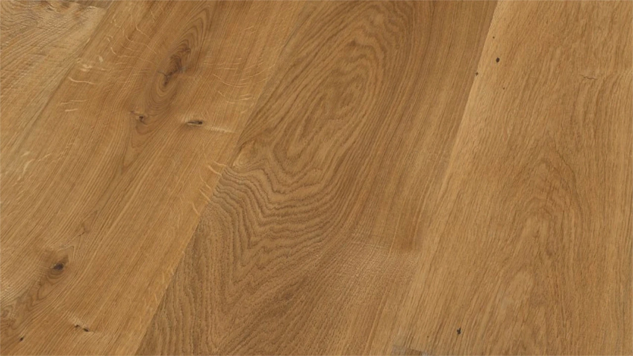 Durch die starken Farbunterschiede im Holzfarbton und die kernrissige und lebhaften Holzstruktur, wirkt jede Diele des Parketts einzigartig. - einfach zu verlegen