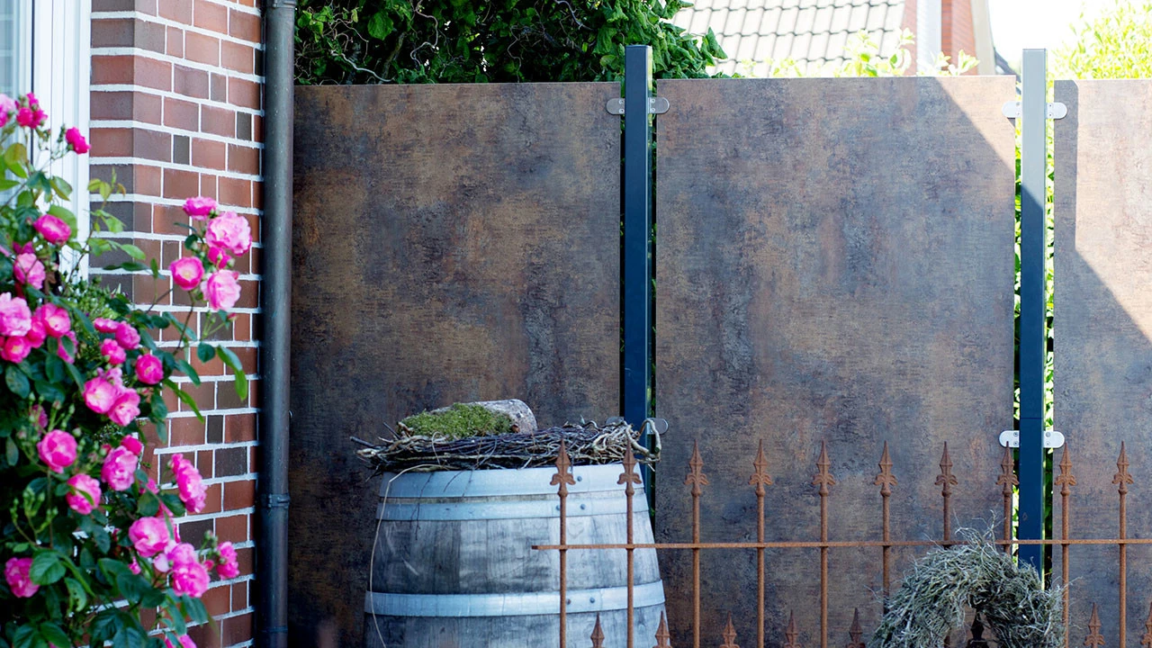 High-Pressure-Laminate) sind zu 100% wasserfest, pflegeleicht und zudem extrem robust und kratzfest. Jährliche pflege durch Nachölen oder Streichen der Zaunelemente ist nicht nötig.