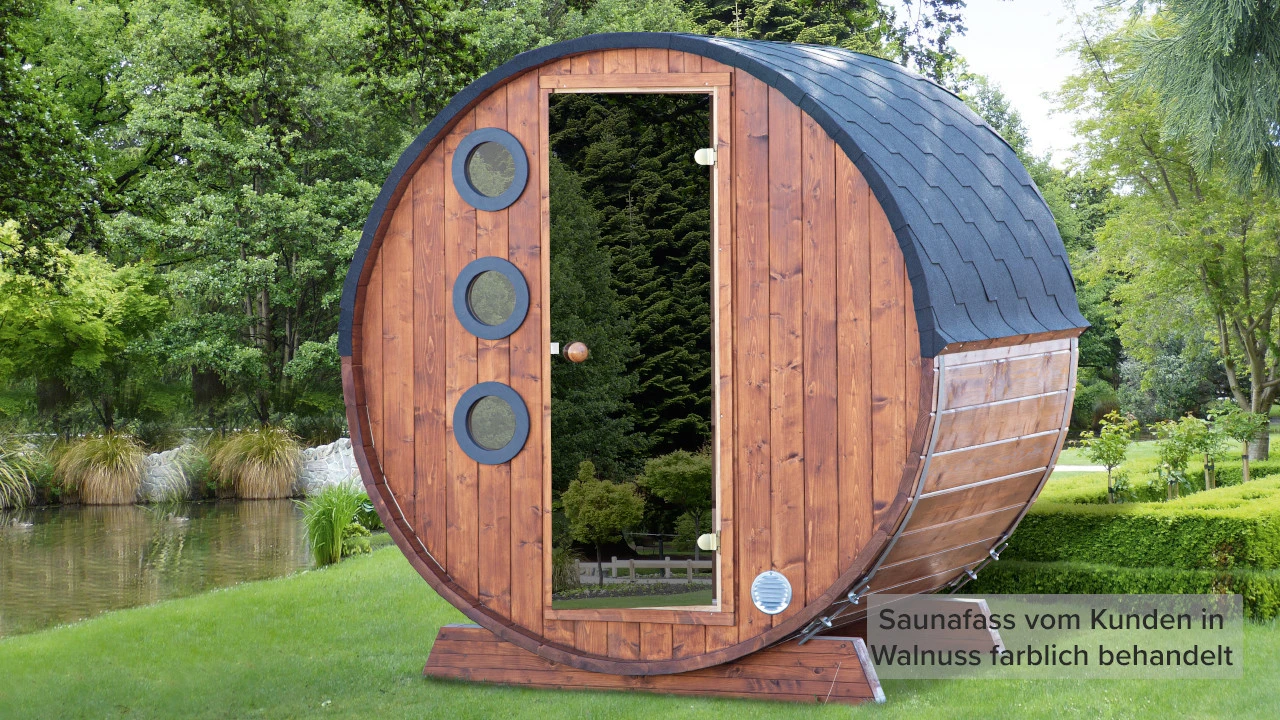 Mit dem planeo Saunafass setzen sie optisch stilvolle Akzente und werten ihren Garten damit besonders auf. Auf ca. 3 m² Grundfläche bietet Ihnen das Fass genug Platz für Wellness und Entspannung.