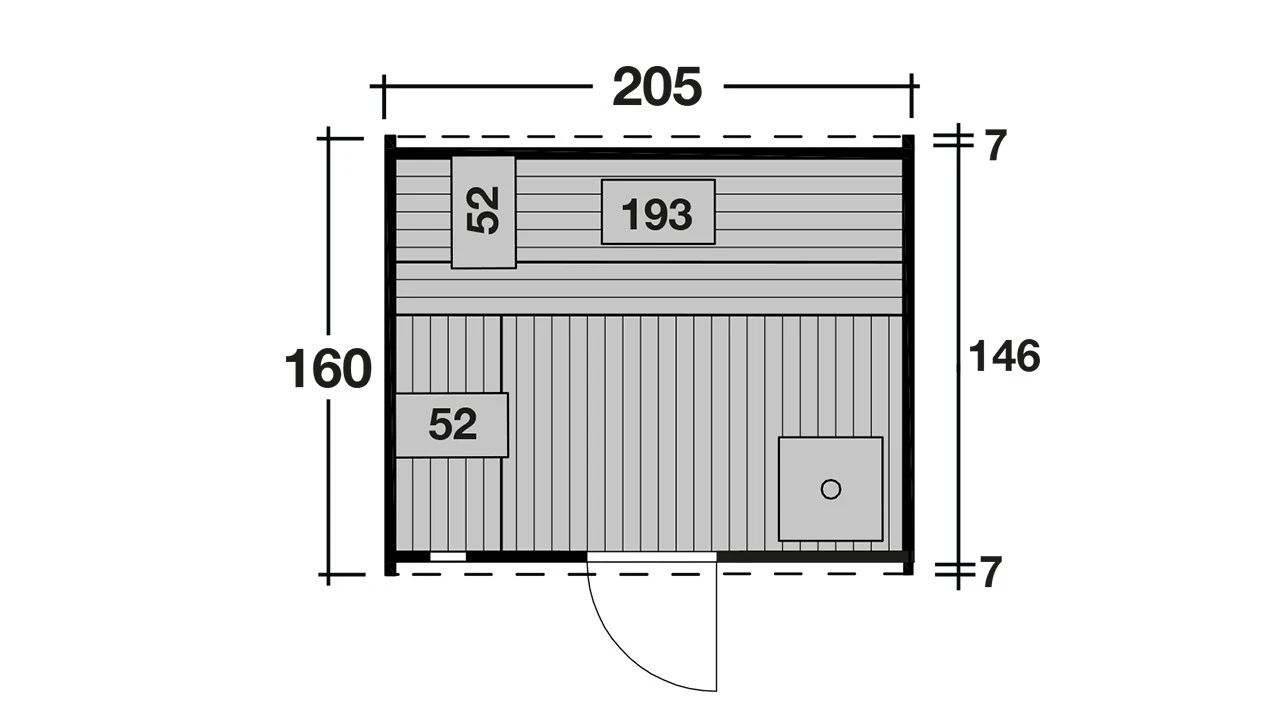 Die Saunabänke aus Erlenholz ermöglichen 3 Liege- und 5 Sitzplätze.